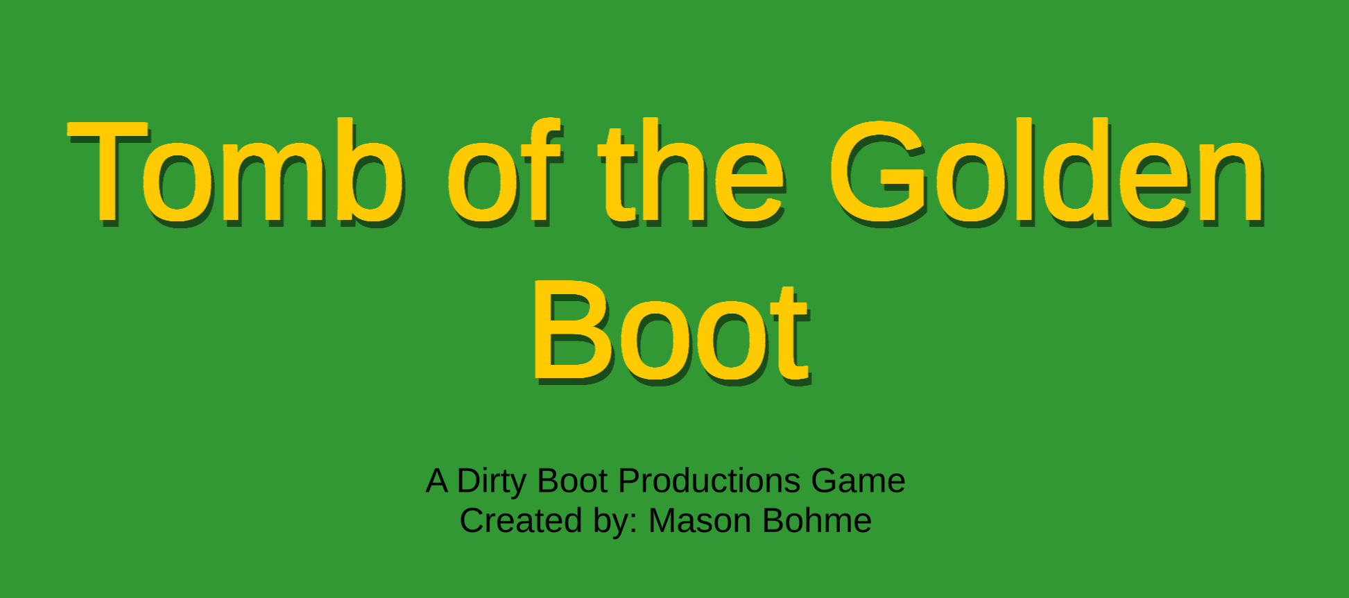 This project is a game that I made in Unity. In the game, you explore one of three randomly selected levels and solve puzzles in order to find a treasure. You are Malcolm Sterling, adventurer and artifact hunter. After gathering some clues, you have discovered the Tomb of the Golden Boot. After rappelling down a rope, you find yourself in a room lit by torches. Who knows what is lurking down there…