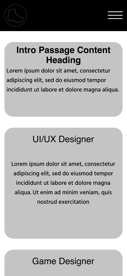 For the About Me page, I wanted to display a brief paragraph about myself and have a dedicated skills section where I could display my skills. With the Projects page, I organized the projects into specific categories, such as UI/UX Projects, Games, and Other Projects. By hovering over a project image, the name of the project would appear, along with a button linking to the project’s associated page. With the Resume page, it would simply display my resume. The Contact page, I simply displayed the links that were already in the page footer, but I also added in my phone number as well.
