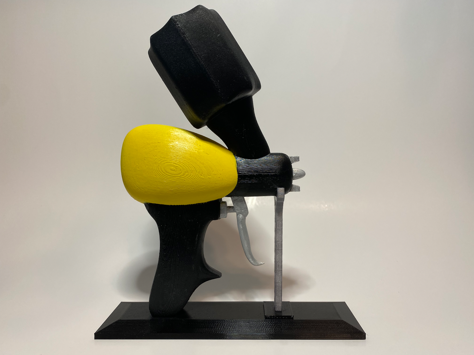 For the Multi-tool Weapon Replica, I created the 3D model in Autodesk Fusion 360. After applying materials to the model in Substance Painter, in order to incorporate it into the gameplay demo, I imported the model into the PrusaSlicer 3D application so I could create a file for my 3D printer. After a couple of mis-prints, the multi-tool replica was finally printed and ready to be painted. I used three different colors of spray paint to paint the model. As for the replica stand, I modified a 3D printer file I had found previously.